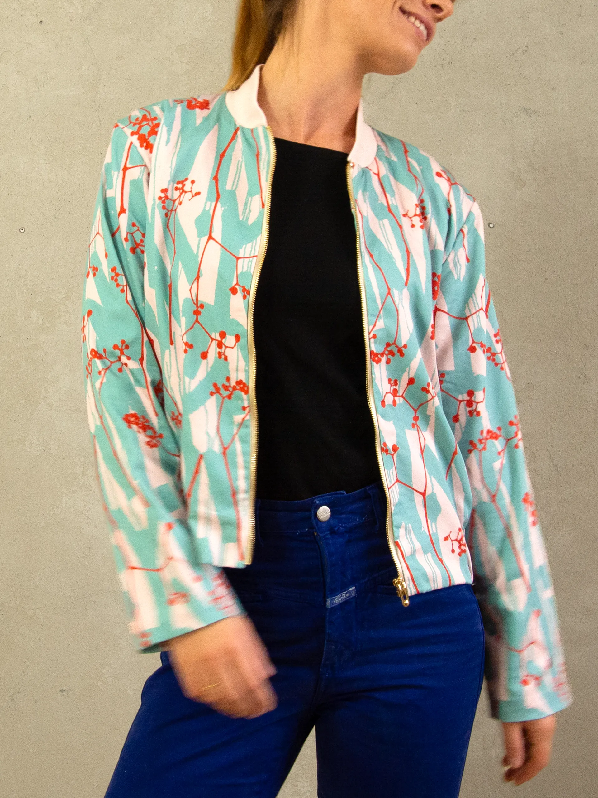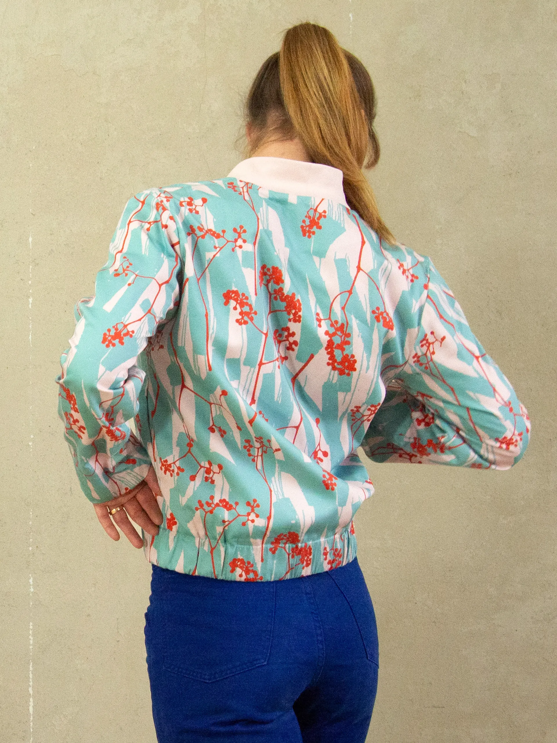 A light summer bomber jacket — made for slow afternoons and long golden evenings contact us here for size and pattern requests