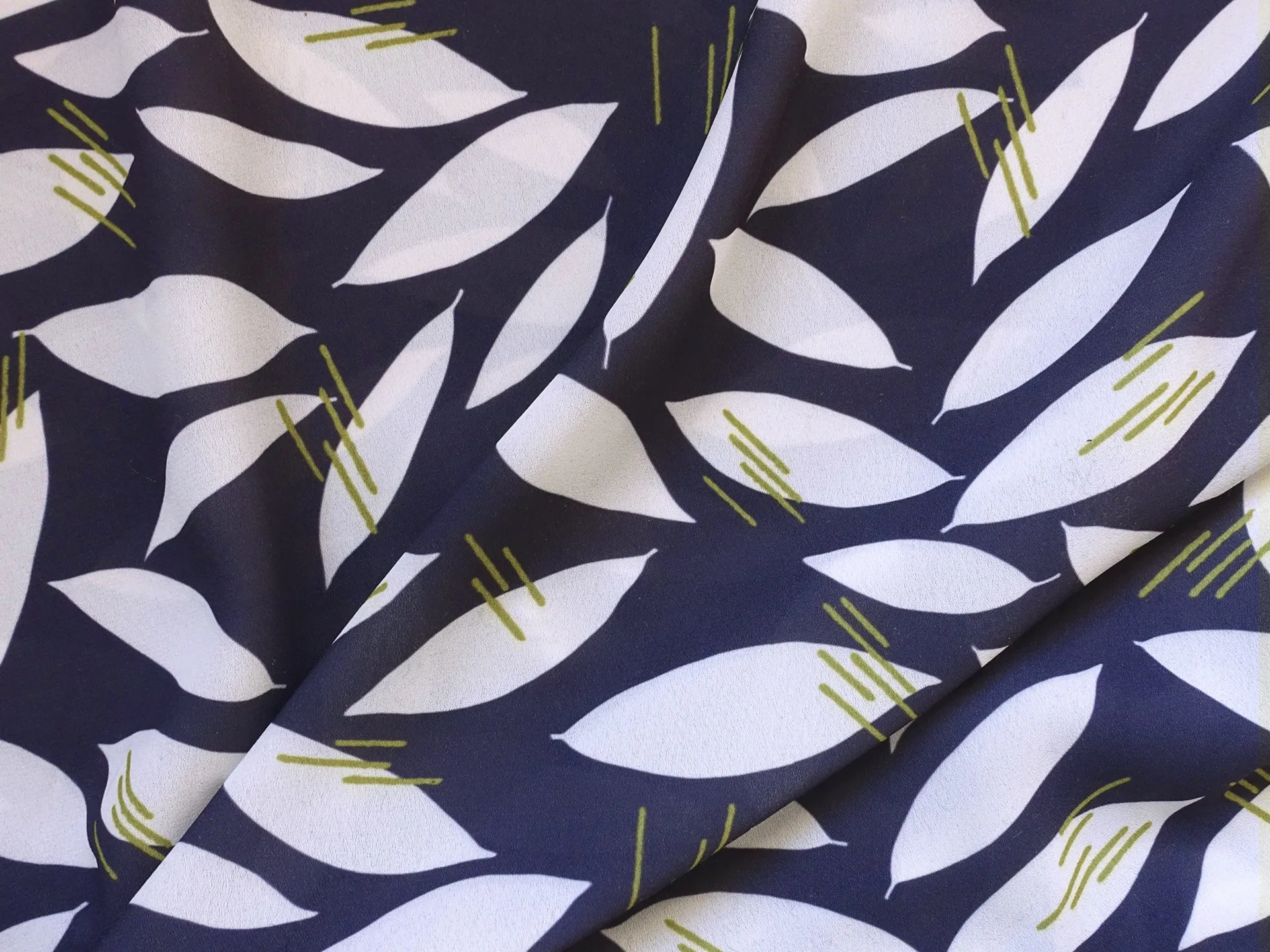 Leaves of Cherry Laurel (»Prunus«). Prototype made out of 100% recycled Polyester Crepe. Printed in Germany