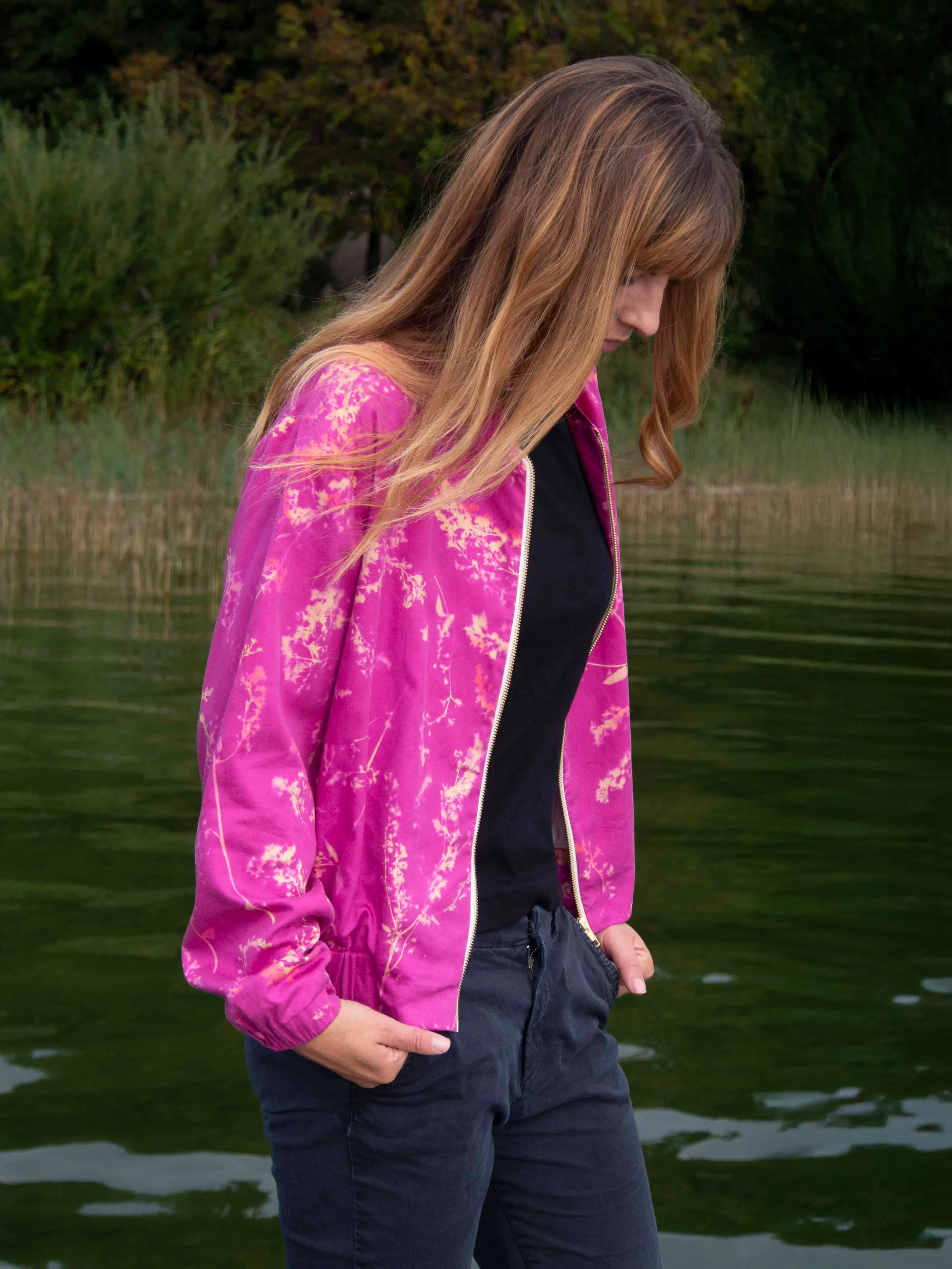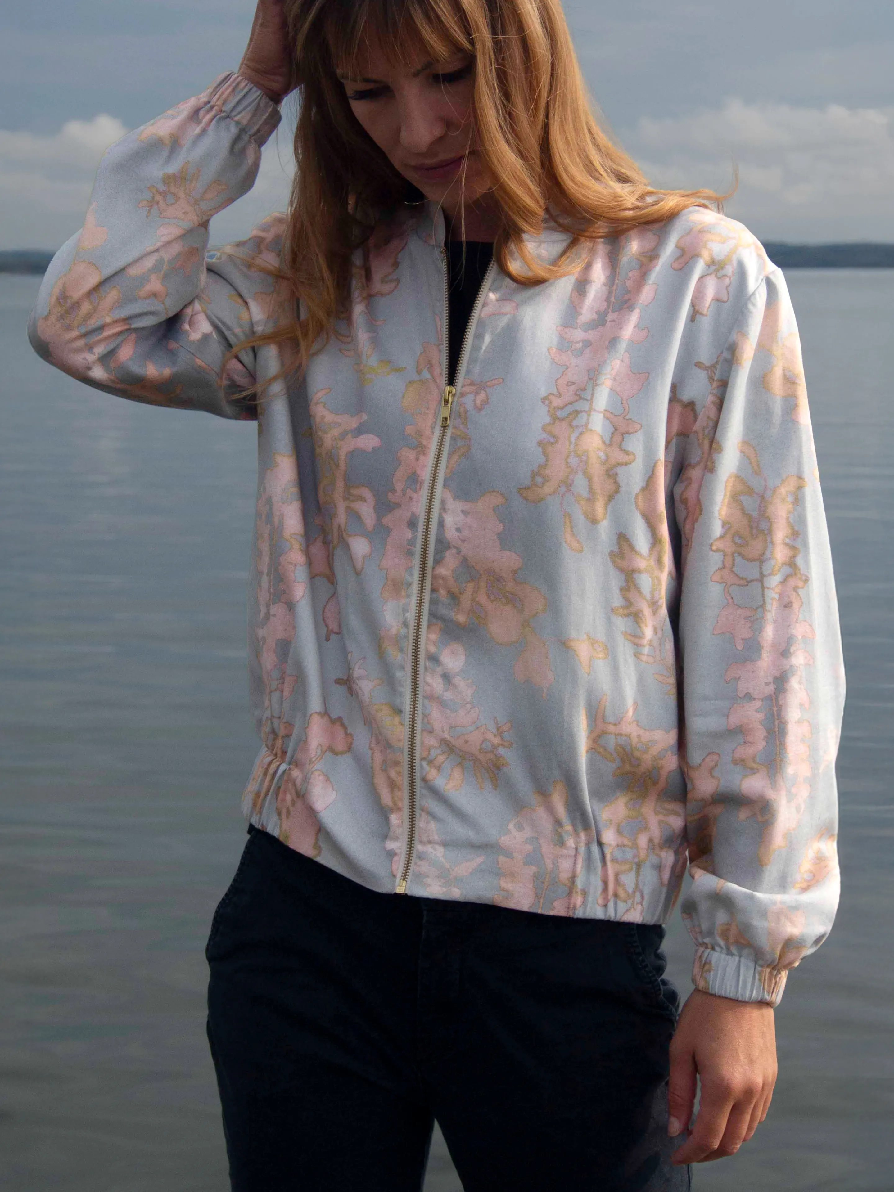 A light summer bomber jacket — made for slow afternoons and long golden evenings contact us here for size and pattern requests